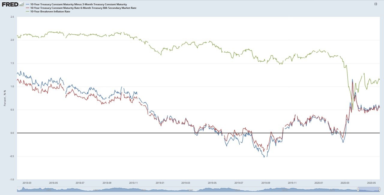 Noch sind Inflationserwartung und Wachstumsprognose (abgeleitet aus der Zinsstruktur) vglw. gering.