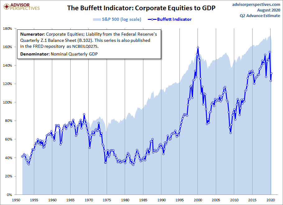 Zugegeben, ein Einzeiler lässt sich immer mal leicht schreiben. Es wäre hilfreich, wenn man es ein wenig ausführlicher begründen würde. Aber so abwegig finde ich die Einwände nicht. Bei oder knapp über 100% gab es in der Vergangenheit nicht zwangsläufig eine Korrektur oder gar einen Crash. Momentan 177% in den USA ist natürlich schon was doll, während es weltweit noch etwas entspannter ausschaut. Bei dieser Relation ist jedoch zu beachten, dass das BIP (nicht nur) in den USA durch Corona stark zurückgegangen ist. Die Börse handelt allerdings die Zukunft und die aktuellen Notierungen preisen eine baldige Erholung bzw. einen glimpflichen Verlauf ein. Muss jeder selbst einschätzen, ob der sog. effiziente Markt da richtig liegt. Hinzu kommt die Liquiditätsschwemme der Notenbanken, was förderlich für Aktien ist. Anleihen taugen bei Null- oder gar Negativrendite sowie Inflationsgefahren angesichts Geldschwemme und hoher Staatsverschuldung nur noch bedingt was (auch als Alternative zu Aktien), weshalb man sich endlich von alten Denkmustern verabschieden sollte. Des Weiteren ist bei der Relation die gegenwärtige Überbewertung speziell von US-Techwerten (FAANG+M+T) zu berücksichtigen. Klammert man diese aus, fällt die Relation geringer aus, denn Aktien aus anderen Branchen sind in der Breite nicht derartig überteuert oder haben teilweise wegen Corona nach wie vor zu knapsen (etwa Tourismus).