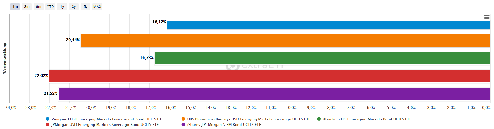 DST März 21, 2020 · bearbeitet März 21, 2020 von DST vor 19 Minuten von CoronaExpert: Am Anfang schon, aber der A0NECU hat in den letzten Tagen doch einiges abgegeben. Ja, in meinem damaligen ETF-Vergleich zur Staatspleite Argentiniens [DST, 2019] hatte der JPMorgan tatsächlich am besten abgeschnitten. Da sieht man mal wie trügerisch es sein kann, von einer einmaligen Situation auf die Zukunft schließen zu wollen. Möglicherweise war die bessere Performance damals schlicht weg auf Glück zurück zu führen. Schaut man sich mal an welche Anleihen der ETF so beinhaltet, dann kann ich kein geringeres Risiko erkennen. Die aktuelle Situation bekräftigt mich in meiner Sichtweise, dass der hohe China-Anteil im Vanguard ETF nicht so riskant ist wie der hohe Türkei-Anteil im JPMorgan. Ich könnte mir sogar vorstellen, dass der JPMorgan nicht nur das höhere Risiko sondern langfristig auch die höhere Renditeerwartung mit sich bringt. Aber ich bin alles andere als ein Experte auf dem Gebiet der Anleihen (persönliche habe ich noch nie in eine Anleihe oder einen Anleihen-ETF investiert, da mir die Renditeerwartung bisher immer zu niedrig erschienen ist). Genießt meine Aussagen also bitte mit Vorsicht. Diesen Beitrag teilen Link zum Beitrag