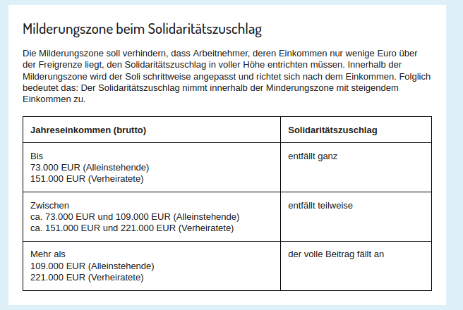 Apropos bestimmter Betrag: Ab wann und bis wann gilt den jetzt diese Soli Gleitzone? Beim Finanzamt lese ich was von ca. 63T (weiß nicht mehr genau) und in den Medien immer 73T.