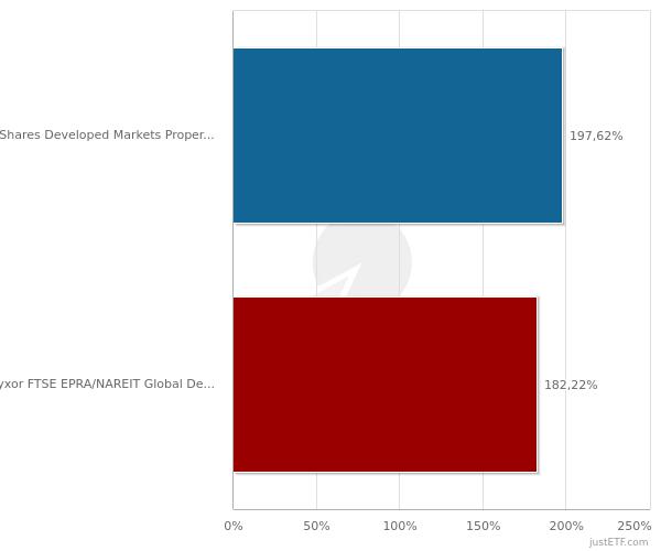 DST Oktober 10, 2019 · bearbeitet Oktober 10, 2019 von DST Die Fondsaufnahme sollte im Rahmen meiner Argumentation keine entscheidende Rolle spielen, da der ursprüngliche Fonds den gleichen Index abgebildet hat und man daher - wie Lyxor und JustETF das auch machen - die historische Performance des "alten" Fonds auch für den "neuen" berücksichtigen kann. Hier nochmal der Performance-Vergleich ab dem ursprünglichen Auflagedatum (11.01.2010) bis zur Fusion (9.11.2018). Der leicht Dividenden orientiere ETF (2% Dividendenrendite ist für einen REIT nicht gerade viel) von iShares (IE00B1FZS350) hat in den fast 9 Jahren mit seinen 12,1 Prozentpunkten mehr den etwas breiter aufgestellten ETF von Lyxor (FR0010833574) um 8,6% outperformed. Diesen Beitrag teilen Link zum Beitrag