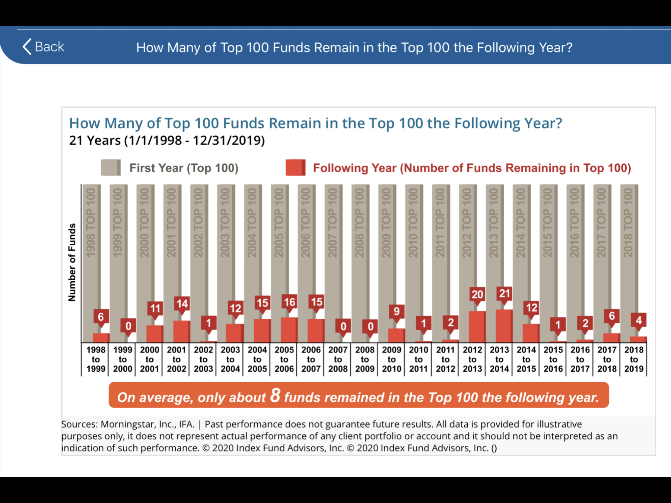 IFA has conducted its own study of more than 500 U.S. equity mutual funds with 20 years of returns data