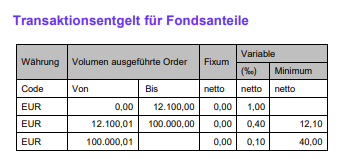 Ich habe heute einen Fonds über die Börse Stuttgart geordert. Nach der Order hatte ich dann ein mulmiges Gefühl, weil ja da zu den 4 Euro noch ein variables Entgelt der Börse Stuttgart hinzukommt, das ich nicht gecheckt hatte.