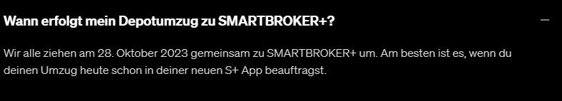 Wir alle ziehen am 28. Oktober 2023 gemeinsam zu SMARTBROKER+ um. Am besten ist es, wenn du deinen Umzug heute schon in deiner neuen S+ App beauftragst.