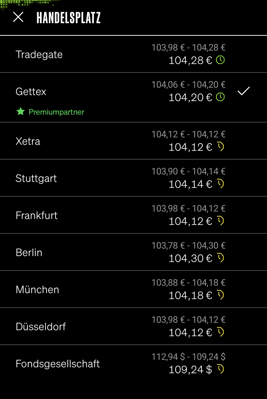 Genau, das ist das Problem, das Baader Bank auch nicht löst. Bei Flatex kann ich realtime-Kurse sehen, zumindest bei xetra. Deshalb handle ich auch meistens größere Volumen nur über xetra. Dafür zahle ich auch gern etwas mehr und spare durch die günstigeren Kurse wieder Geld ein; denn bei gettex ist der Spread übermäßig hoch.