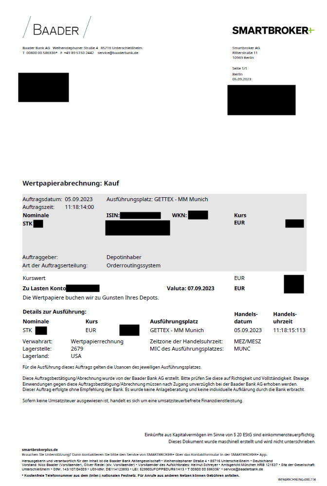 Also wenn es so abläuft wie bei Scalable bekommst du nach der Depoteröffnung eine Mail von der Baader Bank mit dem Betreff "Ihre Konto-/Depoteröffnung", darin ist der Link zum Baader-Portal und eine verschlüsselte PDF-Datei im Anfang mit den Zugangsdaten.