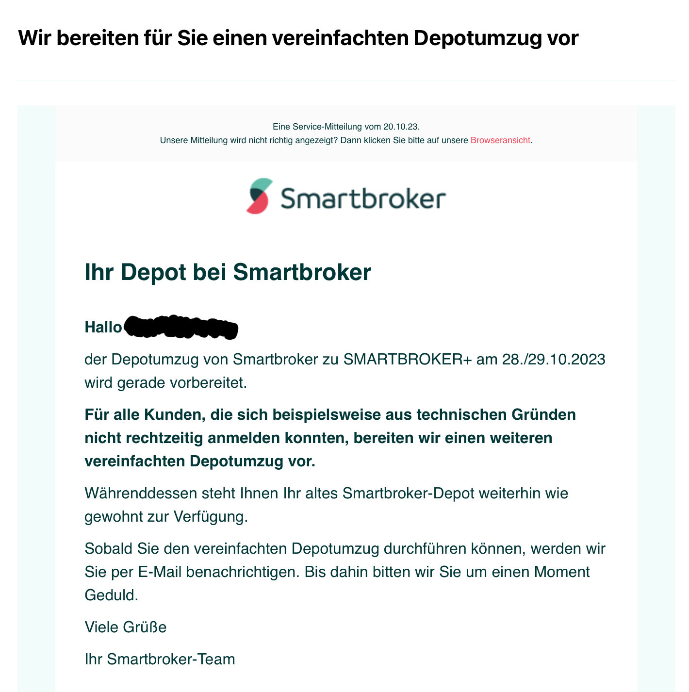 Smartbroken+ bereitet jetzt anscheinend meinen „vereinfachten Depotumzug“ vor, obwohl ich schon vor Wochen einen Vermittlerwechsel durchgeführt habe :dumb: