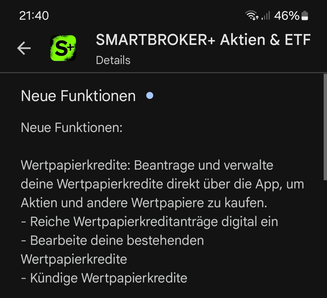 Bei mir nicht. Ich werde immer noch ins FAQ geleitet, wo steht „Wertpapierkredit ( demnächst verfügbar)“. Aber vermutlich funktioniert es bei Dir, weil Du eine alte Lombard-Kreditlinie aus der alten Smartbroker-BNP-Zeit nutz?