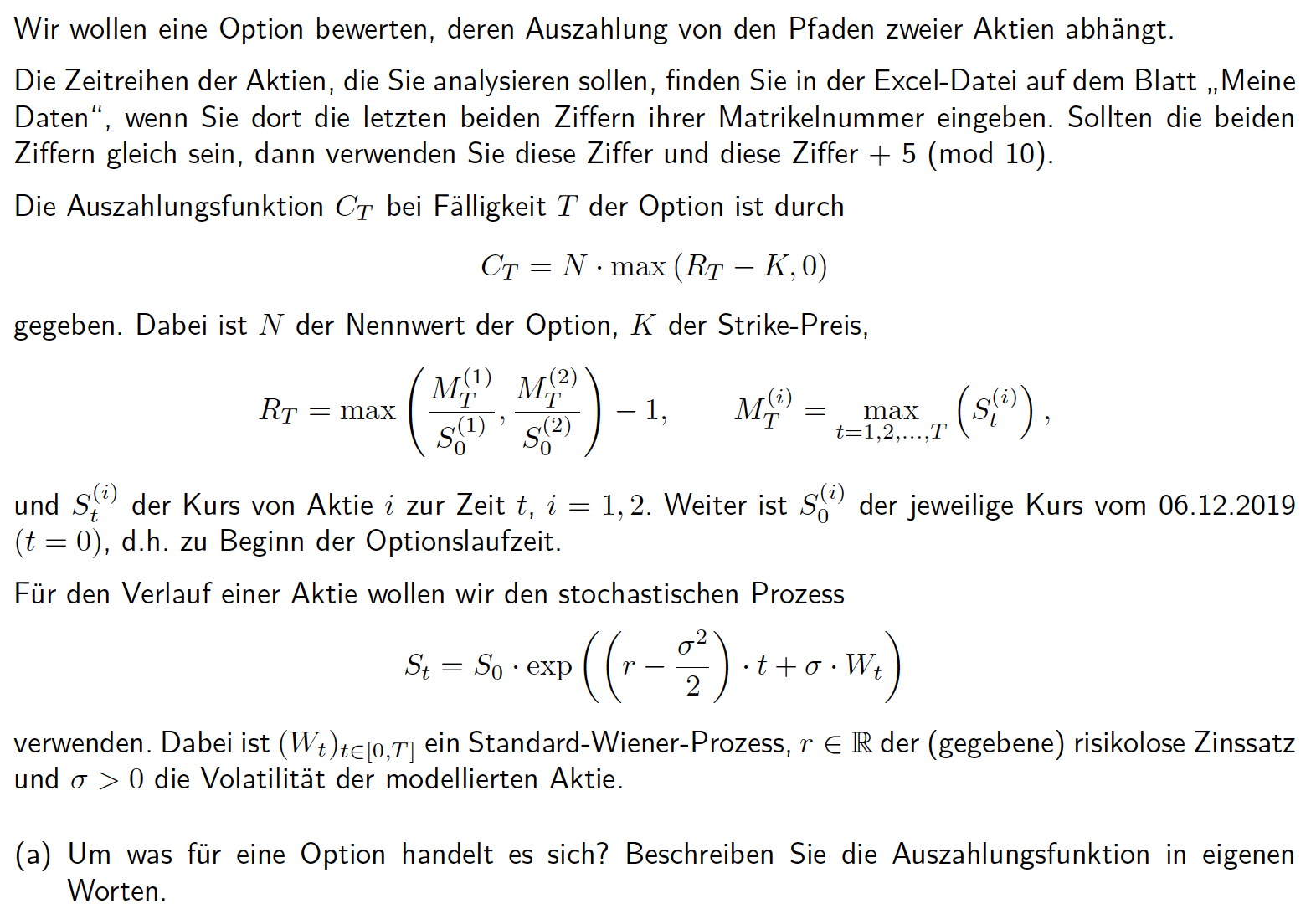 Masteryourmind2 Januar 1, 2020 Hallo zusammen. Hat jemand bei der a) eine Idee ? Ich würde sagen das es sich um eine Call Option handelt, aber mehr könnte ich dazu auch nicht sagen :/ Diesen Beitrag teilen Link zum Beitrag
