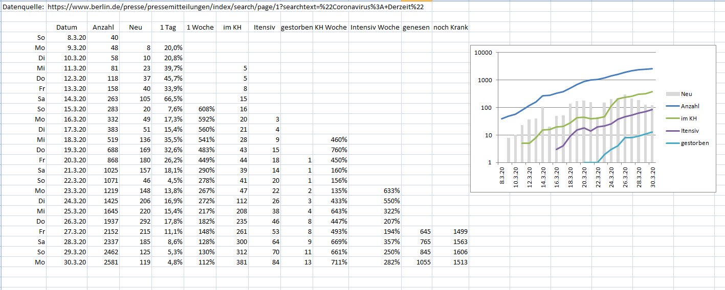dev März 30, 2020 · bearbeitet März 30, 2020 von dev In Berlin sind heute mehr genesen als neue Coronafälle gemeldet wurden. Diesen Beitrag teilen Link zum Beitrag