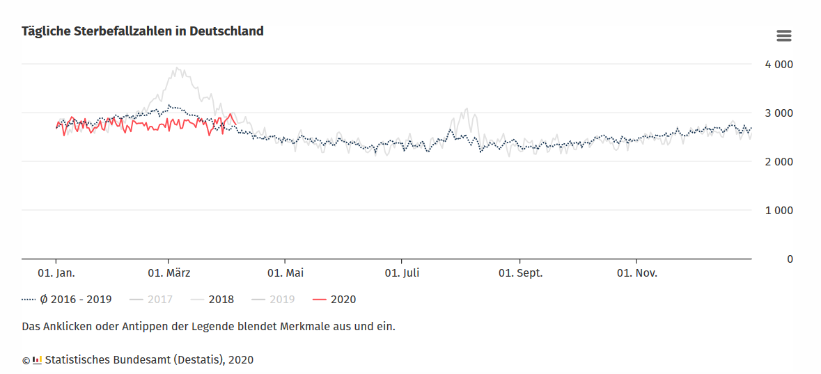 dev Mai 5, 2020 · bearbeitet Mai 5, 2020 von dev vor 1 Stunde von DarkBasti: Vergleicht man die Todeszahlen der letzten Jahre sieht man in diesem Jahr eher eine Abflachung statt einem Anstieg. Im Gegensatz zu 2017 indem eine größere Grippewelle das Land heimgesucht hat. Und nun stell Dir vor, das zukünftig alle zuhause bleiben die Grippesymptome haben, die durften in diesem Jahr auch nicht arbeiten und ihre Grippe verbreiten. Diesen Beitrag teilen Link zum Beitrag