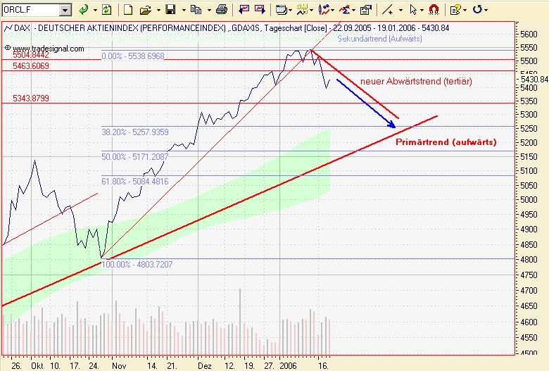 Onassis Januar 19, 2006 Leute, keine Panik! Einfach ruhig den DAX verfolgen. Der Abwärtstrend ist weiterhin intakt. Der DAX darf problemlos bis 5.463 Punkte steigen, ohne den Abwärtstrend zu verletzen. Danach wird er wahrscheinlich weiter fallen. Aber beurteilt den Chart selbst. Onassis Diesen Beitrag teilen Link zum Beitrag