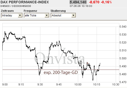 mocca Juni 7, 2006 jetzt geht es definitiv weiter bergab. ema 200 ist angeknackst und linie durchbrochen.ich korrigiere mein gestriges kursziel von 5370 auf 5350. Diesen Beitrag teilen Link zum Beitrag