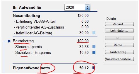 Die Antwort zu meiner Nachfrage wurde ganz plump damit beantwortet (telefonisch), dass alle Kosten vom Arbeitgeber übernommen werden und alle Beiträge garantiert sind. Das hat mich nicht zufriedengestellt.