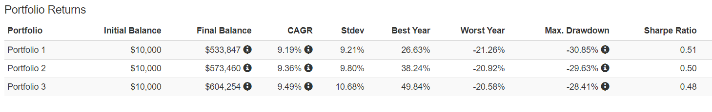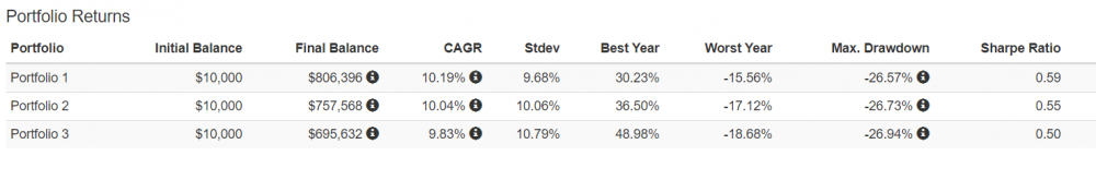 Bigwigster April 17, 2020 · bearbeitet April 17, 2020 von Bigwigster Und noch einmal treibt mich die Frage nach dem "optimalen" Anteil von Gold in meiner Asset Allocation herum. Oder sagen wir besser nach einem sinnvollen Anteil, die Entscheidung ist aber gar nicht so leicht. Ich habe nun noch einem online ein paar Backtests gemacht (https://www.portfoliovisualizer.com/backtest-asset-class-allocation#analysisResults). Dabei habe ich 3 Portfolios verglichen: Portfolio 1: 60% US Large 10% Gold 30% Treasurys Portfolio 1: 60% US Large 20% Gold 20% Treasurys Portfolio 1: 60% US Large 30% Gold 10% Treasurys Testzeitraum habe ich ab 1975 gewählt, entsprechend der Empfehlung von Gerd Kommer für einen sinnvollen Betrachtungszeitraum von Gold. Ergebniss mit 10-year Treasurys: Mit Cash statt Treasurys nochmal das selbe: Meine Schlüsse daraus: - das Risiko in Form des Max. Drawdown (für mich jedenfalls die relevanteste Kennzahl) wird nicht im relevanten Maß vom Goldanteil des Portfolios beeinflusst - die Renditeaussichten sind sehr stark von der Alternative zu Gold abhängig. Das ist natürlich für sich keine besondere neue Erkenntnis, wenn man sich allerdings mit 10% mehr Gold statt Tagesgeld wohlfühlt sollte sich die erwartete Rendite erhöhen, der Max. Drawdown aber nicht - ich werde die Festlegung meiner Soll Asset Allocation doch bei 60% Aktien 15% Gold 25% Risikoarm lassen. Grundsätzlich fühle ich mich doch wohler wenn die zusätzliche Anlageklasse etwas höher gewichtet ist In der Praxis sehe ich die Wahrscheinlichkeit als hoch an, dass ich stellenweise doch vom Soll abweichen werde. Die Zukunft wird es zeigen Diesen Beitrag teilen Link zum Beitrag