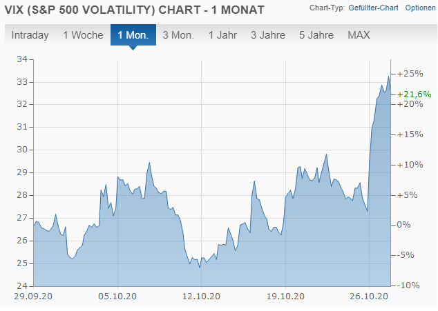 Da Deutschland ja heute Shutdown 2.0 eingeläutet hat (auch wenn offensichtlich noch niemand aus Politik und Medienlandschaft die Eier hat das Kind beim Namen zu nennen), Frankreich einen neuen Lockdown ernsthaft erwägt, die Niederlande ihn durchziehen und auch in vielen anderen Ländern ähnliche sinnfreie Eskalationen bevorstehen, steigt die Wahrscheinlichkeit für einen neuen Crash ebenfalls erheblich.