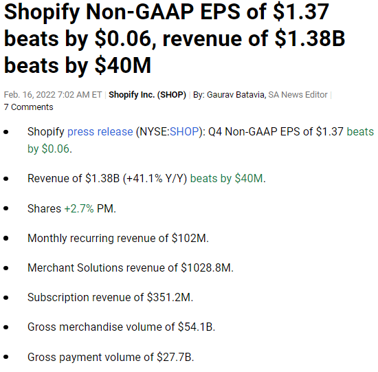 Toni Februar 16, 2022 · bearbeitet Februar 16, 2022 von Toni https://seekingalpha.com/pr/18673717-shopify-announces-fourth-quarter-and-full-year-2021-financial-results Diesen Beitrag teilen Link zum Beitrag