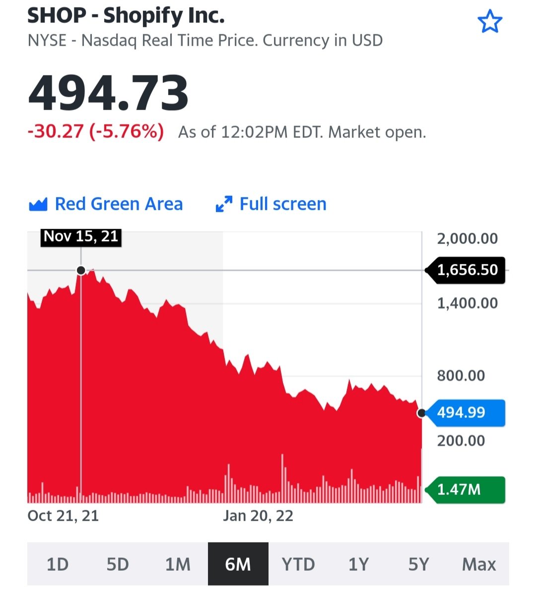 herbert_21 April 27, 2022 · bearbeitet April 27, 2022 von herbert_21 Shopify ist ein großartiges Unternehmen mit einem großartigen Businessplan und CEO. Was die Aktie betrifft, so eignete sie sich 2022 jedenfalls nicht für Buy and Hold: Disclaimer: ich habe kein Shopify und es würde in meinem Depot, höflich ausgedrückt, nicht positiv zur Diversifikation beitragen. Diesen Beitrag teilen Link zum Beitrag