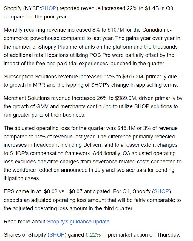 Doomer Juli 27, 2022 Zitat $SHOP - miss EPS: -0.03$ vs +0.03$ expected $SHOP - miss Rev: 1.3b$ vs 1.33b $ expected $SHOP - miss gross merchandise volume: 46.9b$ vs 48.8b expected $SHOP - guidance lowered $SHOP - 3rd quarter operating loss expected to increase materially $SHOP - 4th quarter now expects loss alles verfehlt und alles gestrichen Diesen Beitrag teilen Link zum Beitrag