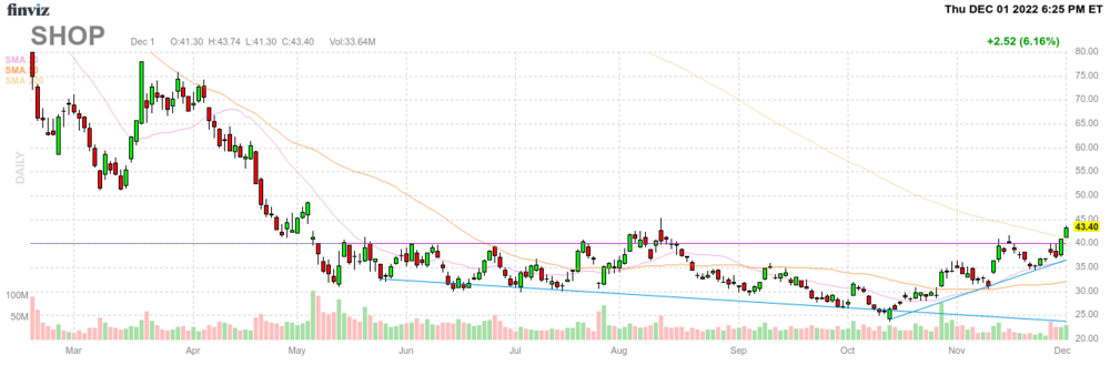 Hawkeye Juli 15, 2023 Ruhig hier; Shopify hat sich seit dem letzten Tiefpunkt etwas mehr als verdoppelt und hat nach dem Tief von Ende 2022 den langfristigen Aufwaertstrend wieder aufgenommen. Fundamental wird sich am 2. August zu den Quartalszahlen mehr zeigen. Diesen Beitrag teilen Link zum Beitrag