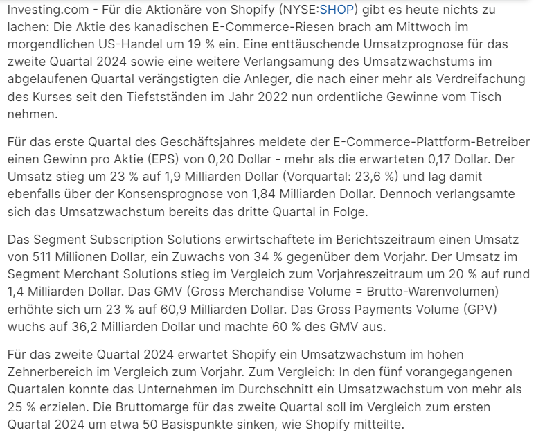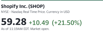 Shopify mit starken Zahlen , die Aktie steht derzeit bei +19% - 59€