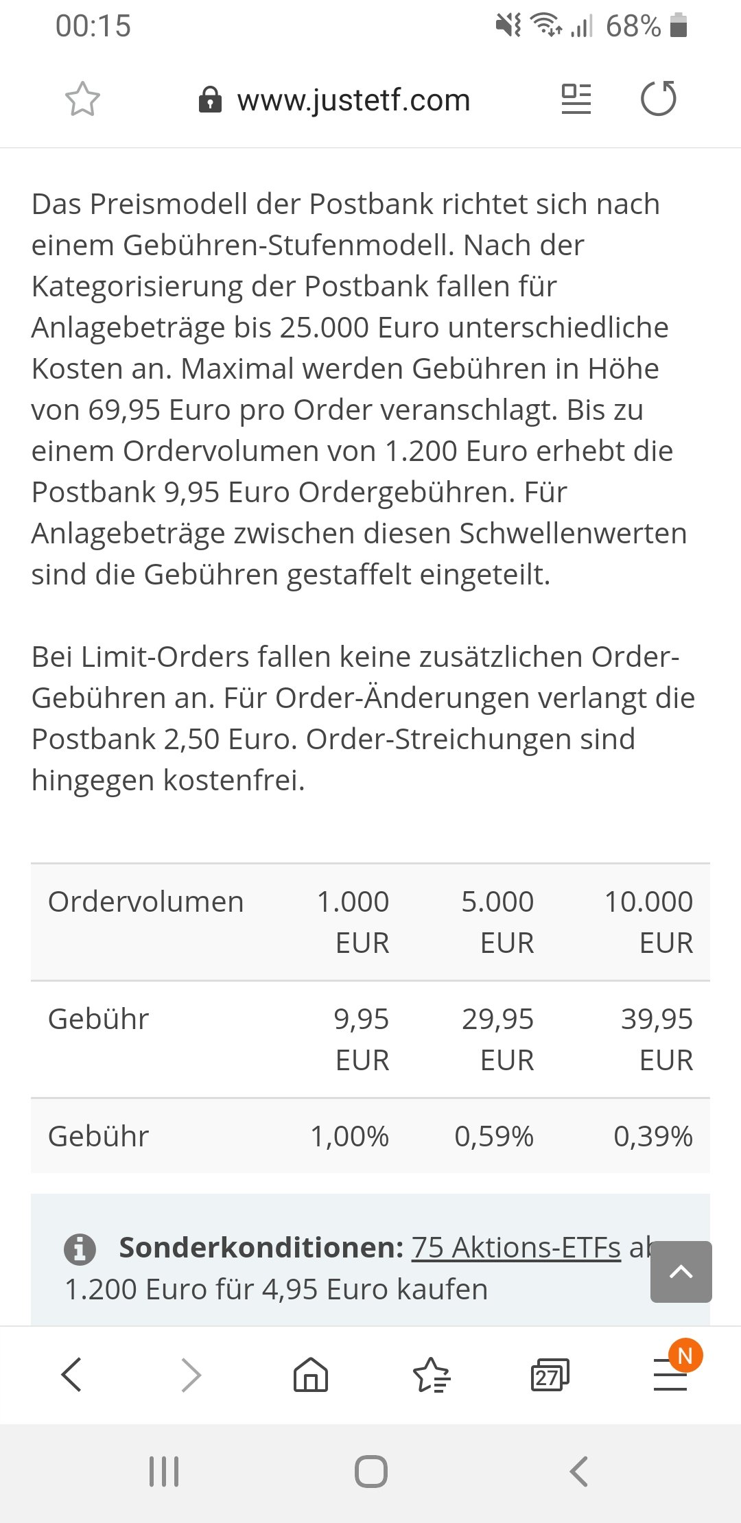 Bin Postbankkunde und dort kosten die Ordergebühren ab 25000€, 39,00 € und die Gebühren bei x-beliebiger sparrate 0,90 Cent.