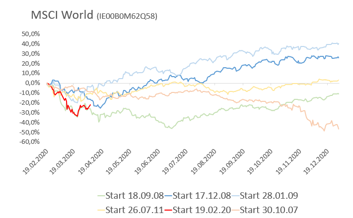Das ist für mich eine der großen Lehren aus der aktuellen Krise. Wenn 20 % minus im Portfolio dem Wert eines neuen 911er entspricht, dann muss man eventuell die Aktienquote etwas senken. Ich dachte bis vor der Krise auch, dass ich mit 70-80 % Aktienquote gut leben kann. Jetzt wurde mir bewusst, dass 40-50 % besser zu mir passen, weil der Verlust in absoluten Zahlen ab einer gewissen Depotgröße psychologisch mehr mit einem anrichtet, als man sich zunächst vielleicht vorstellen kann.
