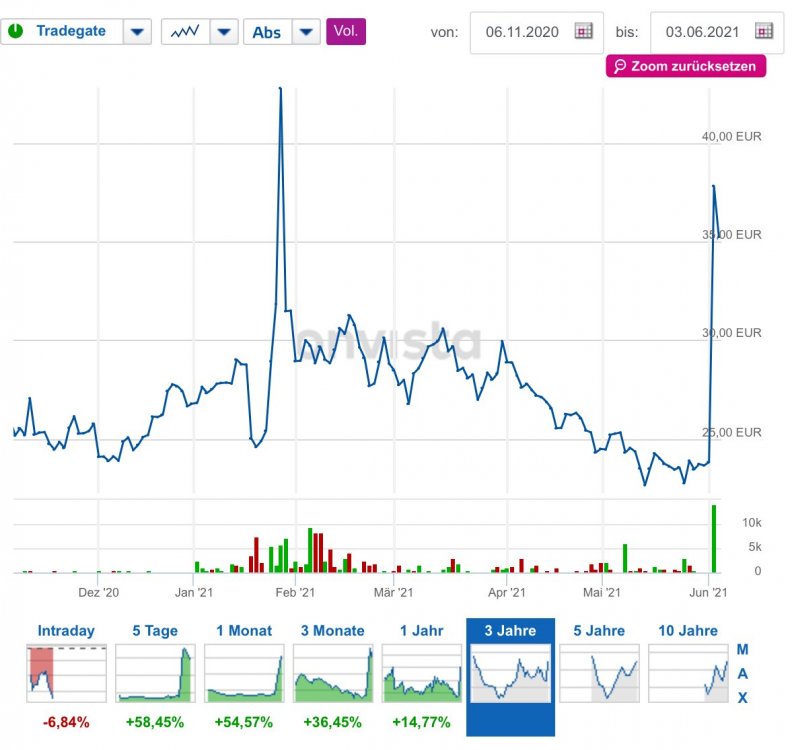 Die würde ich mal opportunistisch verkaufen, nachdem hier wieder die Reddit-Spekulanten aktiv sind ;)