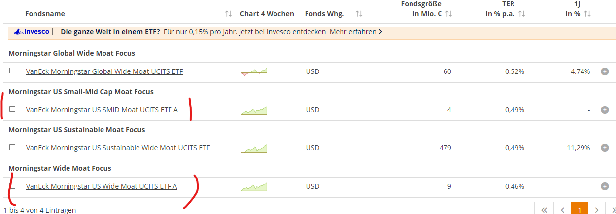 cutter111th Februar 13, 2024 Nachdem man ja vor ca. zwei Jahren den US Wide Moat ETF auf ESG umgestellt hat, ist man nun wohl zu der Erkenntnis gekommen, dass das keine gute Idee war. Als Ergebnis hat man nun zwei neue ETF aufgelegt. Zunächst den US Wide Moat ohne ESG und einen US Moat ETF für Small und Midcaps. Hilft den Leuten, die zuvor in den alten US Moat ETF investiert haben, auch nicht weiter. Diesen Beitrag teilen Link zum Beitrag