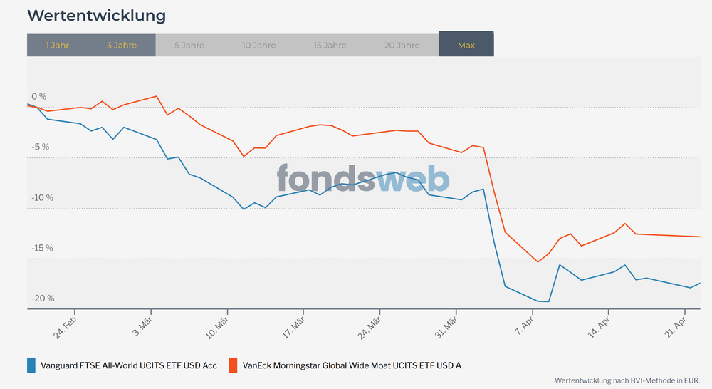 McGibblets April 26, 2025 Seit dem 18. Februar: Hat sich in den letzten gut 9 Wochen somit ein bisschen besser gehalten. In den zwei Jahren vorher hingegen war der Performance-Unterschied deutlich: Frage mich, ob eine Beimischung zur Abdämpfung nach unten Sinn macht. Andererseits müsste die wohl so groß sein (um einen wirklichen Effekt zu erzielen), dass man damit in einer Aufschwungphase zu viel Rendite liegen lässt. Diesen Beitrag teilen Link zum Beitrag