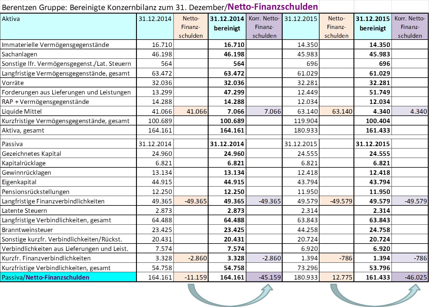 FrauMatzke Januar 29, 2017 (Erst-) Informationen: Zunächst die Eckdaten: Grundkapital 24,96 Millionen Euro Anzahl der Aktien 9,6 Millionen Rechnerischer Nennwert / Aktie 2,60 Euro (WKN) 520160 Marktsegment: Regulierter Markt / General Standard Darüber hinaus (die nach eigenen Vorstellungen bereinigte) Bilanz ... ... und GuV (zusätzlich ergänzt um direkte EK-Veränderungen) und ... ein erster Ausblick auf die Jahre 2016 und 2017, und zwar unter Berücksichtigung einzelner Segmente. Anm.: Die vorläufigen Geschäftszahlen 2016 sind in Kürze zu erwarten. "CC" steht für Citrocasa, "AFG" für alkoholfreie Getränke und "Sprit" für die Residualgröße Spirituosen. Die Aufteilung ist aus Transparenzgründen stark vereinfacht - nicht deckungsgleich mit der im Berentzen-Geschäftsbericht. (e = erwartet) Die Tabellen dienen ausschließlich Bewertungszwecken. Alle Angaben ohne Gewähr (Studium der Originalunterlagen, d.h. des Geschäftsberichts 2015 der Berentzen-Gruppe AG wird empfohlen). Als "Draufgabe" noch ein Auszug aus einer etwas älteren Analyse, die aber meiner Meinung nach die Chancen und Risiken eines etwaigen Engagements ganz gut beschreibt. Quelle: http://www.*SPAMPOST BITTE MELDEN*/berentzen-aktienanalyse/ (Autor: Philipp Haas, 08.12.15) „Im Kerngeschäft scheint Berentzen aus dem Schlimmsten heraus zu sein, auch wenn es immer wieder Rückschläge gab, wie das Auslaufen des Vertrages mit Pepsi Cola, was durch Sinalco ersetzt worden ist. Bei den alkoholischen Marken ist Berentzen zwar noch bekannt, hat aber keine große Stärke, da die Kernzielgruppe immer älter wird und man auch keine Premiumpreise, wie beispielsweise bei Jägermeister oder Diageo verlangen kann. Bei den Nebenmarken wie Bommerlunder wird deshalb auch eine Erntestrategie gefahren, d.h. es wird nicht mehr viel investiert aber bestehende Kunden noch bedient. Ein echten Wettbewerbsvorteil hat Berentzen also nicht, auch wenn die ein oder andere Marke wie Citrocasa oder Mio Mio Mate Wachstumspotential besitzt. Auch hat das Unternehmen wenig Wissen und Verständnis im Premiumsegment, wo’s beispielsweise im Gin-Bereich viele neue Marken und kleinere Erfolgsgeschichten gibt, weswegen ein Markteintritt hier überlegenswert wäre. Eine Flasche Berentzen kostete nämlich vor 40 Jahren ca. 8 DM und ist heute auch nicht viel teurer beim Discounter zu haben, woran man den relativen Markenabstieg der Flasche erkennen kann. Die Produktqualität im Bereich alkoholische Getränke ist also mäßig, während sie bei Citrocasa als sehr hoch einzuschätzen ist.“ Vielleicht sollte man noch hinzufügen, dass Berentzen zwischenzeitlich eine Anleihe über 50 Mio., die am 18.10.2017 endfällig wird, vorzeitig refinanziert hat. Ohne auf Einzelheiten einzugehen: zukünftiges Einsparungspotential schätzungsweise gut zwei Mio. € p.a. So, das wär's. Aktualisierungen folgen nach Lust und Laune, spätesten im Anschluss an die Bekanntgabe der vorläufigen Zahlen für 2016 (wie bereits erwähnt in Kürze zu erwarten). Ist schon jemand investiert oder schlicht und einfach nur interessiert? Diesen Beitrag teilen Link zum Beitrag