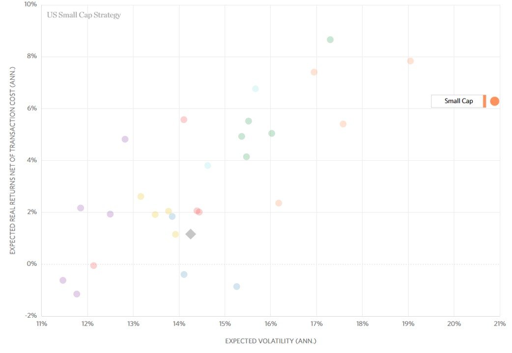 Bei Small ist es vermeintlich einfach, da man nur die Historenrenditen der jeweiligen Größenordung auflisten muss und schon sieht man die höhere Rendite, die aber idR. auch mit höherem beta einhergeht. Der Faktor selbst ist aber eigentlich riskiadjustiert und somit komplizierter zu berechnen, weil er auch bei normierten beta noch eine Überrendite erzielen soll. Hier stellt sich schon bei der RA-Sicht die Frage, ob mit dem SC-Faktor die Überrendite zu Large Cap gemeint ist oder die Überrendite zu einem beta-normierten Large Cap. Relevant als Faktor ist ja nur die letzeres und das finde ich dann schon schwer zu prognostizieren. Wie macht RA das bzw. wie ist das überhaupt möglich?