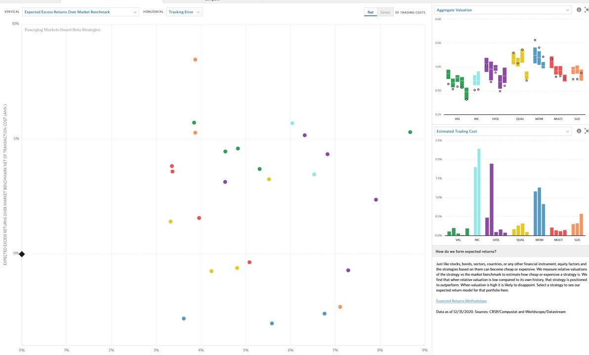 Bei EMs siehts anders aus. Hier kann man gemäß Forward-Looking Renditeerwartung auf SC verzichten. Value hat überall eine hohe Erwartungsrendite (grün).