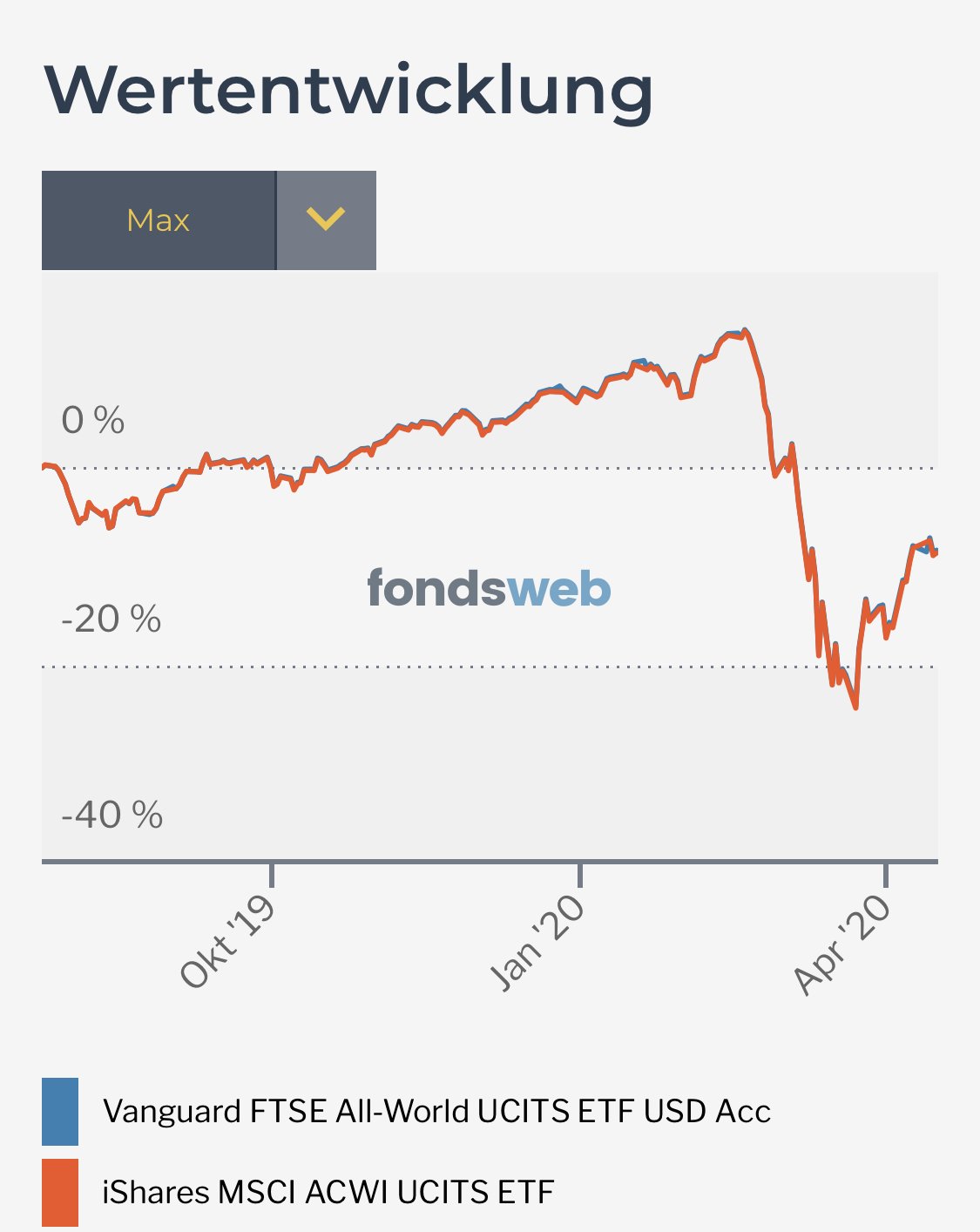 Nein, die Entwicklung ist sehr ähnlich, wie du an den fondsweb Links siehst. Du hast einfach irgendeine ziemlich seltsame Darstellung, die ja noch nicht einmal am selben Punkt startet.