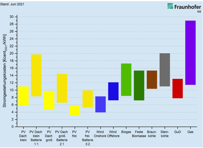 Studie zu Stromgestehungskosten: Photovoltaik und Onshore-Wind sind günstigste Technologien in Deutschland - Fraunhofer ISE
