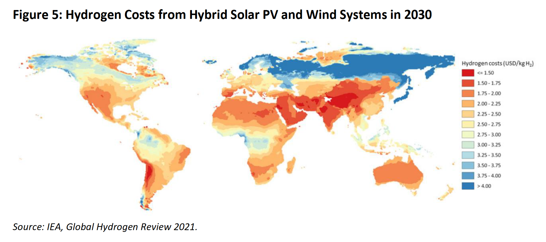 in 2050 US$1.0/kg H2 mit Capex US$250/kW und Strom US$12/MWh