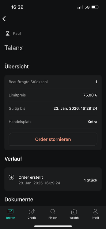 Ich handle nicht über xetra da es von den drei angebotenen Handelsplätzen der teuerste ist und er grundsätzliche meine letzte Wahl wäre. Ich habe jetzt mal eine Testorder aufgegeben, geht ohne Probleme