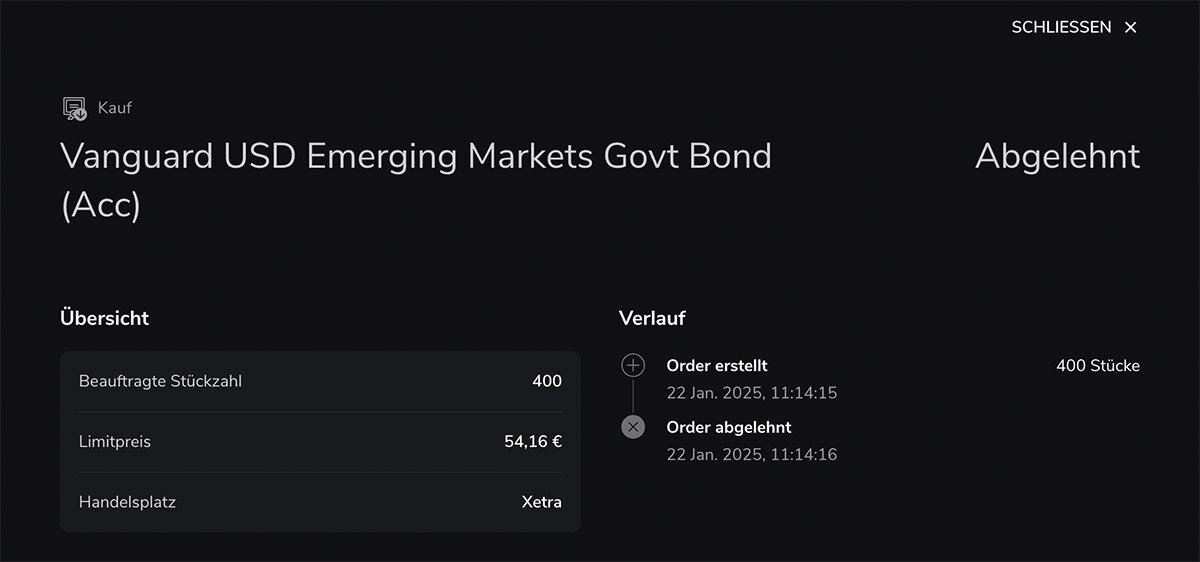 Ja, manchmal ist das echt ein Problem, dass die Broker-Maske etwas zulässt, was die Börse nicht zulässt. Aber hier ist das wohl nicht der Fall gewesen.