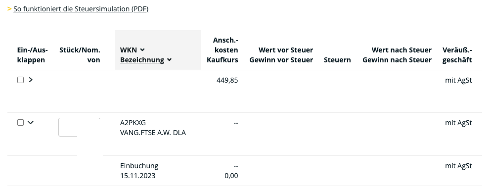 Vielen Dank für eure Antworten. Ich habe es festgestellt, da die Steuersimulation keine Daten ausweist. Im Depot habe ich es in der Anzeige natürlich eingepflegt. Hier ist ein Screenshot (links habe ich die Anzahl entfernt).