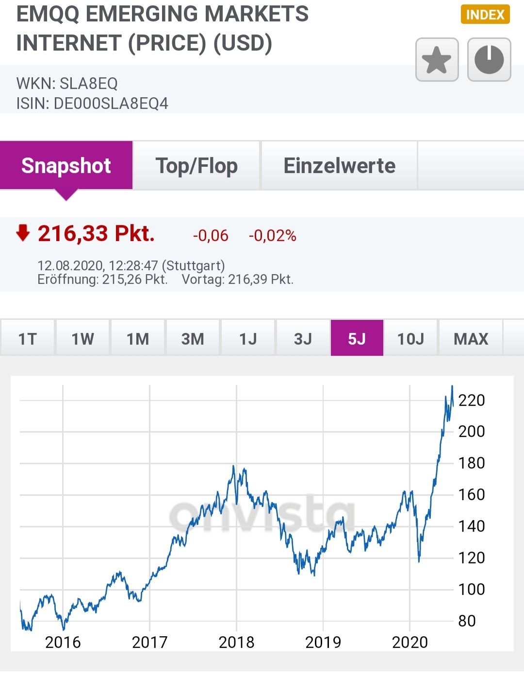 Besserwisser Oktober 4, 2020 Ich hab den den EMQQ auf jetzt nochmal um weitere 800 Anteile (12,67 €/Anteil) aufgestockt. Er ist die ideale Ergänzung zu meinem Aktiendepot das hauptsächlich aus US-Tec-Aktien besteht. Diesen Beitrag teilen Link zum Beitrag
