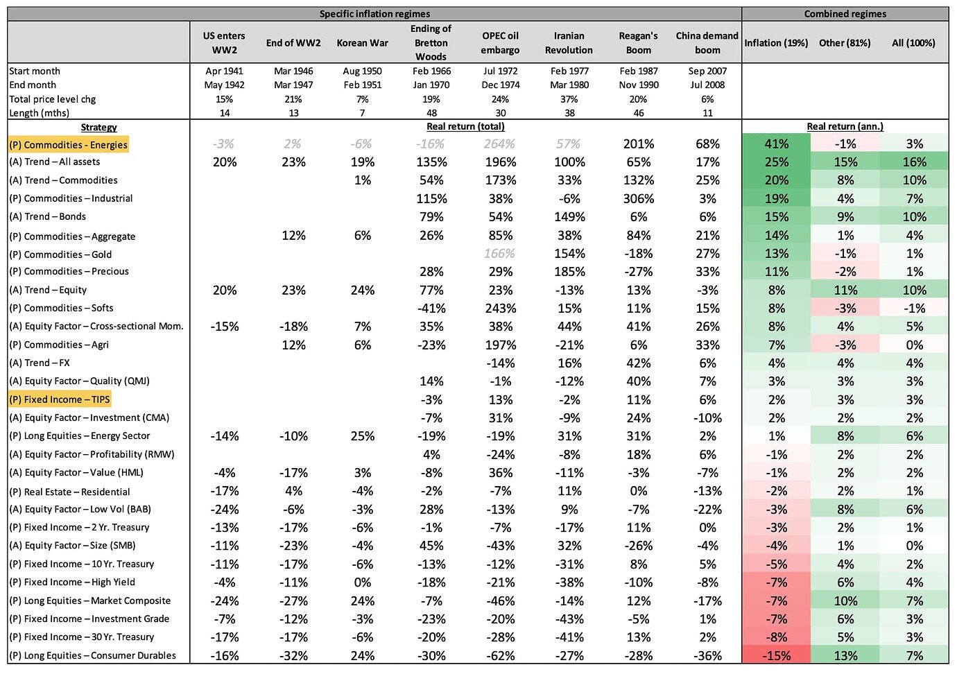 Sestertius März 5, 2022 Erst mal danke für deine Einschätzung! Eine Trendfolge- bzw. Momentumstrategie scheint im Zusammenhang mit Commodities ja zumindest historisch nicht ganz uninteressant gewesen zu sein, wenn es u.a. darum ging (unerwartete) Inflationssprünge zu hedgen. Auch hat eine "Trend - Commodities" Strategie außerhalb von Inflationsregimes im Rückblick nicht schlecht performed (siehe Grafik 2). Hierzu noch zwei ganz interessante Grafiken (Goldjünger müssen stark bleiben): Quelle: Commodities and short-term TIPS: how each combats unexpected inflation - Vanguard Quelle: Weiß ich leider nicht mehr Die Frage ist dann natürlich trotzdem immer, wie und ob überhaupt sich das mit den verfügbaren Fondsprodukten im Euroraum tatsächlich realisieren lässt :\ Der iShares Roll Select Index gewichtet, wenn ich das richtig verstanden habe, im Wesentlichen nach Backwardation, richtig? Würdest du den (unabhängig von den horrenden Spreads) hinsichtlich Trendfolge trotzdem vorne sehen? Ich habe für mich beschlossen langfristig einen ganz kleinen Teil (5-10%) meines "Notgroschens" gegen (unerwartete) Inflation absichern zu wollen. Hierzu würde ich zwar prinzipiell lieber kurzlaufende Euro TIPS bevorzugen, allerdings gibt es dafür leider (noch) keinen passenden ETF in Deutschland, daher müssen nun Commodities herhalten Diesen Beitrag teilen Link zum Beitrag