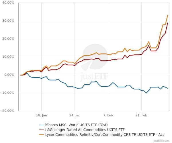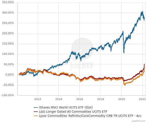 Madame_Q März 7, 2022 · bearbeitet März 7, 2022 von Madame_Q vor 1 Stunde von rentier: Der gesuchte Index wäre der Continuous Commodity Index. Danke. Gibt es darauf einen ETF? vor 28 Minuten von Matunus: Hier nochmal mit dem, wenn ich es richtig verstanden habe, von @Madame_Q bevorzugten L&G. Rein von der Performance wich der (laut @Madame_Q, habe nicht nachgeschaut, ob/wie viel geronnene Milchprodukte im Index tatsächlich enthalten sind) käsige ETF von @DST eigentlich nur während der Coronakrise merklich ab. Maximal verfügbarer Zeitraum: Ebenfalls danke! Welche WKN hat der von dir genutzte ETF? Ich hatte nur bei Fondsweb geschaut und dabei nur diesen hier gefunden: https://www.fondsweb.com/de/LU1829218582 Der der "ex Energy" ist, hatte ich auch die negative Meinung dazu. Jetzt bei nochmaliger Suche finde ich den hier: https://www.fondsweb.com/de/LU1829218749 Seltsam ist aber, dass bei beiden steht, dass sie erst seit 2019 existieren und nicht seit 2006? Den Käse oben habe ich korrekterweise wieder aus dem Kühlschrank genommen (sofern er damals tatsächlich den "incl. Energy" genommen hat. vor 59 Minuten von Sapine: Merci - die Sinnhaftigkeit von Vergleichen ist oft nicht gegeben. Aber wenn zuvor nur auf den Einjahresvergleich abgezielt wurde, zeigt diese Abbildung, dass man damit deutlich zu kurz springt. Und je nach Start-/Endzeitpunkt solcher Betrachtungen kommt man zu völlig unterschiedlichen Beurteilungen. Meine Erkenntnis ist eher, dass sowohl der 1-Jahreschart, als auch der 14 Jahreschart wenig aussagen, sondern eher der 30 Jahre Chart oder etwa nicht? Diesen Beitrag teilen Link zum Beitrag