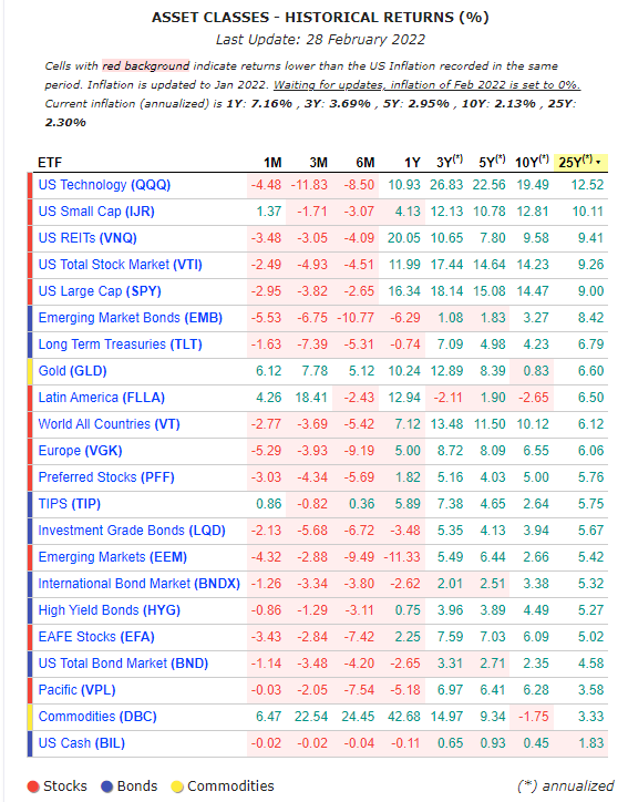 Sapine März 7, 2022 @cutter111th Corona hast Du vergessen zu erwähnen was zu gewissen Lieferproblemen geführt hat und dadurch auch zu Materialknappheiten. Unbestritten, einige Preissteigerungen waren auch schon vor der Ukraine Krise da (die Hälfte? ein Drittel?). Allerdings wäre es auch nicht korrekt die Ukraine Krise auf den Beginn der Kampfhandlungen festzusetzen. Es ändert im Prinzip nichts an der Rechnung, dass Commodities in der Vergangenheit nicht mal /kaum die Inflation erwirtschaftet haben. Daher hält sich meine Begeisterung in Grenzen. vor 7 Minuten von Madame_Q: Nachtrag zu "meinem Taschenrechner": Die von @Sapineso wichtig erachteten 25 Jahre: Das brutale Anstieg der US-Aktien (und damit auch des ACWI) der letzten Jahre ist natürlich Standard und ist daher auch in Zukunft so zu erwarten! (Achtung - könnte Spuren von Ironie enthalten!). ok - meine letzte Antwort von mir an Dich, schade aber ich lasse mir die Worte nicht gerne im Munde verdrehen. "meine so wichtig erachteten 25 Jahre" wurden von mir nie als wichtig erachtet. Diesen Beitrag teilen Link zum Beitrag