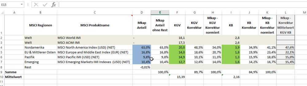 Oder waren die Kennzahlen KGV / KB aller Regionen Mitte diesen Jahres wirklich so extrem, dass man damit auf die ~55% Amerika gekommen wäre?
