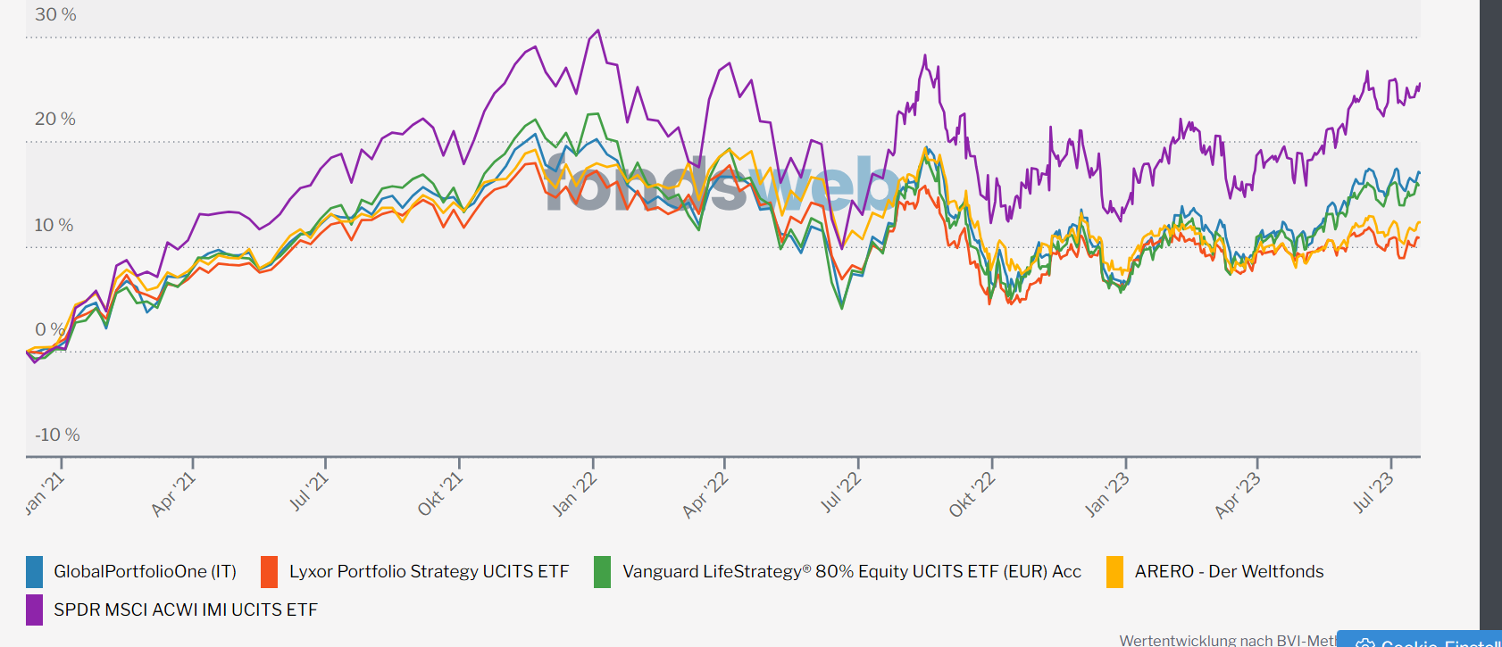 Ja - das ist nicht verwunderlich. Allerdings besteht ein Standardportfolio aus beispielsweise 80 Aktien und 20 Renten. Mit Tagesgeld war es halt die letzten Jahre besonders günstig. Ich hatte halt versucht mich auf gute Mischfonds zu begrenzen im Vergleich.