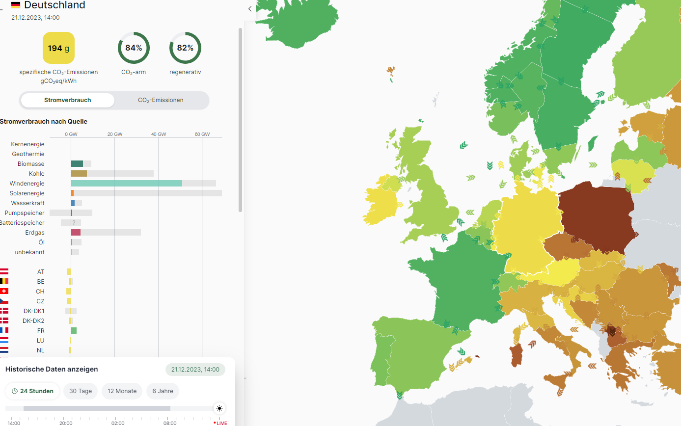 Klar, heute und die nächsten Tage wird man auch reichlich abregeln, da landen wir halt durch den starken Wind bei 100% EE in Relation zum Bedarf. Da postet dann auch keiner irgendwelche Charts von Electricity maps ;-)