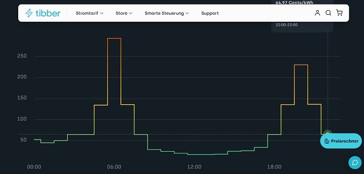 Aber sind im Durchschnitt um die 75 ct/KWh im Tagesdurchschnitt, jetzt von 6-7 Uhr extreme 2,9356 €/KWh und spätabends von 22-23 Uhr immer noch 0,6497 €/KWh....