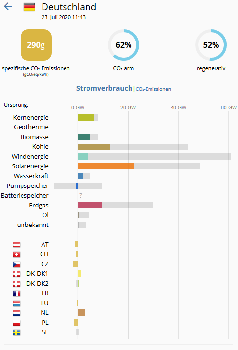 Grauer balken jeweils installierte Leistung, der farbige die aktuelle Leistung.