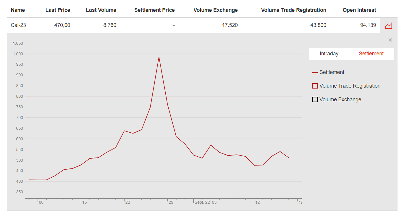 Stimme dem zu 110% zu. Es ist bekannt, dass aktuell u.a.in Frankreich absoluter Strommangel herrscht, also bieten auch Gaskraftwerke mit. Selbst wenn man 10 Euro pro MWh Sicherheitsabschlag berücksichtigt, landet man bei über 400 Euro/MWh.