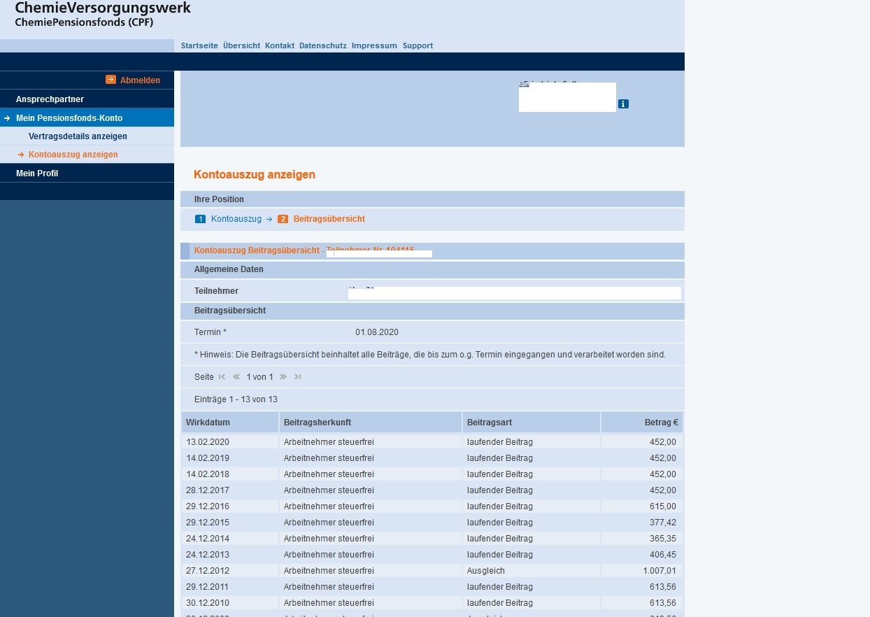 Ich habe vermutlich jetzt im "hohen" Alter von fast 53 Jahren erstmalig die Möglichkeit in den Chemie Pensionsfond einzuzahlen. Ich habe die ganzen Unterlagen noch nicht, aber soweit ich bisher herausgefunden habe, sind die Jahres Beträge wie folgt:
